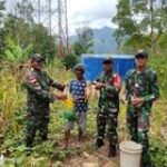 Satgas Pamtas Yonarhanud 15/DBY yang Dpp Letda Arh Gunanjar dan beserta 4 anggotanya bersama warga di Desa Manusasi Kec. Miomaffo Barat