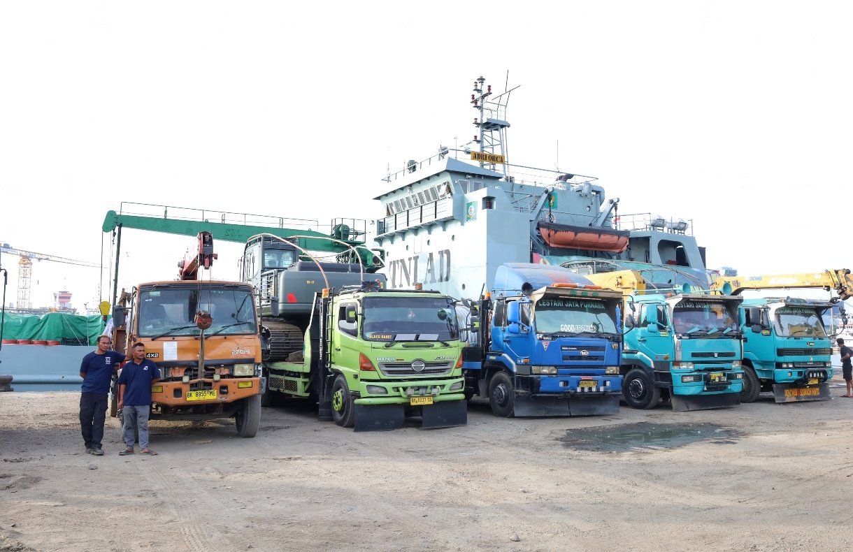 matabangsa.com-Belawan: Pangdam I/Bukit Barisan Mayjen TNI Hendy Antariksa kembali meninjau kedatangan bantuan dari Kepala Staf Angkatan Darat (Kasad) Jenderal TNI Maruli Simanjuntak yang diangkut menggunakan Kapal ADRI LXVIII di Dermaga 202 Ujung Baru, Pelabuhan Belawan, Medan, Minggu (18/1/2026).