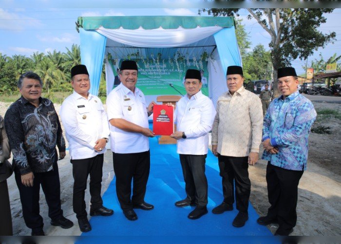 matabangsa.com – Asahan : Pemerintah Kabupaten Asahan secara resmi menyerahkan sertifikat tanah hibah untuk pembangunan Madrasah Aliyah Negeri (MAN) Insan Cendekia Kabupaten Asahan seluas 94.030 meter persegi. Penyerahan tersebut berlangsung di Jalan Budi Utomo, Kelurahan Mutiara, Kecamatan Kota Kisaran Timur dilahan eks BSP dan dihadiri oleh Bupati Asahan, Wakil Bupati Asahan, Wakil Menteri Agama Republik Indonesia, Kakanwil Kementerian Agama Provinsi Sumatera Utara, Kakan Kemenag Kabupaten Asahan beserta jajaran, Camat Kota Kisaran Timur, serta tamu undangan lainnya, Rabu (14/01/2026).