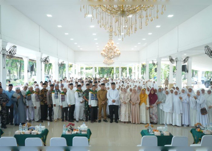 matabangsa.com – Asahan : Pemerintah Kabupaten Asahan menggelar kegiatan Upah-Upah Calon Jamaah Haji Tahun 1447 H/2026 M di Pendopo Rumah Dinas Bupati Asahan, Selasa (21/4/2026) sore. Kegiatan tersebut dihadiri oleh Bupati Asahan Taufik Zainal Abidin SSos MSi, Wakil Bupati Asahan Rianto SH MAP, unsur Forkopimda, Ketua DPRD Asahan, Ketua MUI Asahan, jajaran OPD, Ketua TP PKK Kabupaten Asahan beserta Staf Ahli, pengurus IPHI, serta para jamaah calon haji beserta ketua rombongan.