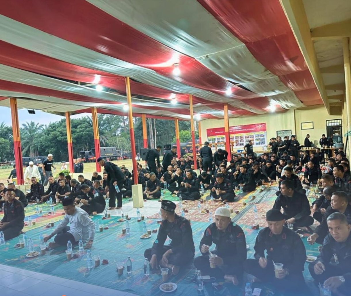 matabangsa.com-Medan: Momentum bulan suci Ramadhan dimanfaatkan oleh jajaran Satuan Brimob Polda Sumatera Utara untuk memperkuat kebersamaan dan meningkatkan nilai spiritual di lingkungan satuan. Hal tersebut terlihat dalam kegiatan buka puasa bersama yang dilaksanakan oleh personel Kompi 2 Batalyon C Sat Brimob Polda Sumut di Aula Batalyon C, Jumat (6/3/2026).
