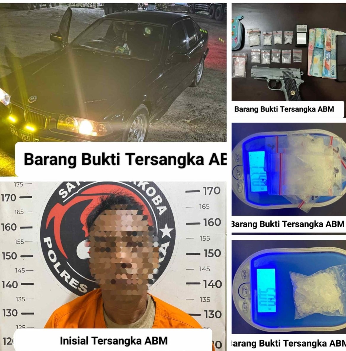 Selain sabu, petugas turut mengamankan satu unit telepon seluler merek Samsung warna hitam, satu unit timbangan elektrik, plastik klip kosong, satu pipet berbentuk skop, dompet kecil warna biru, serta uang tunai sebesar Rp3.050.000 yang diduga hasil transaksi. Polisi juga menyita satu unit mobil BMW E36 warna hitam BK 1181 AT dan satu pucuk senjata airsoft gun warna silver.