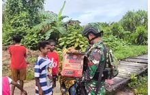 Teluk Bintuni – Pos Beimes Satgas Pamtas RI-PNG Kewilayahan Papua Barat Yonif 642/Kapuas DPP Serda Victorius melaksanakan kegiatan berbagi sembako dan makanan ringan di Kampung Desra Distrik Dataran Beimes, Kabupaten Teluk Bintuni Provinsi Papua Barat, Jumat 28 Februari 2025.
