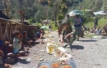 Prajurit Yonif 323 Buaya Putih Pos Beoga setiap minggunya menyerbu pasar Beoga untuk memborong Berbagai Jenis Sayuran yang dijual mama Papua.