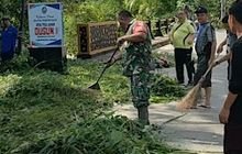 Kegiatan membersihkan lingkungan untuk pelestarian alam sekitar, dilakukan Serda Edi Nurmala bersama perangkat desa dan warga masyarakat.
