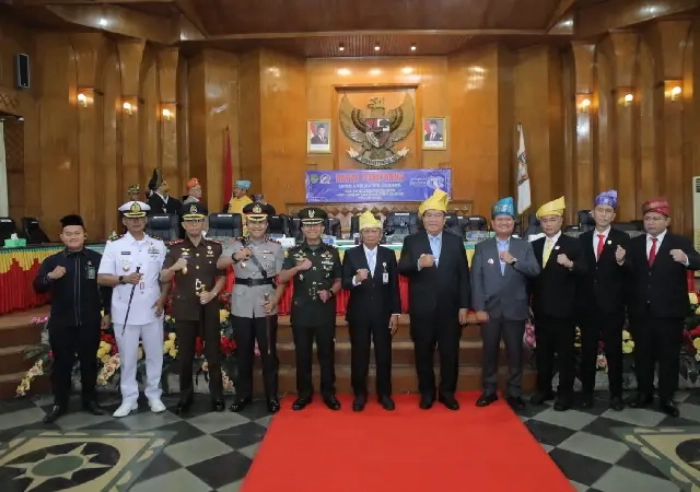matabangsa.com – Asahan : Dewan Perwakilan Rakyat Daerah (DPRD) Kabupaten Asahan menggelar Rapat Paripurna dalam rangka memperingati Hari Jadi ke-80 Kabupaten Asahan Tahun 2026 di Aula Rambate Rata Raya Sekretariat DPRD Kabupaten Asahan, Senin (16/03/2026). Rapat Paripurna ini dihadiri Wakil Gubernur Sumatera Utara, Anggota DPRD Provinsi Sumatera Utara, Bupati Asahan, Wakil Bupati Asahan, Wakil Bupati Batu Bara, Wakil Wali Kota Tanjung Balai, Ketua DPRD Kabupaten Asahan, Kajari Asahan, Dandim 0208/Asahan, Danlanal TBA, Ketua PN Kisaran, Anggota DPRD Kabupaten Asahan, Sekretaris Daerah Kabupaten Asahan, para OPD, Camat se-Kabupaten Asahan, Staf Ahli I TP PKK Provinsi Sumatera Utara, Ketua TP PKK Kabupaten Asahan, Staf Ahli TP PKK Kabupaten Asahan, Ketua DWP Kabupaten Asahan serta tamu undangan lainnya.