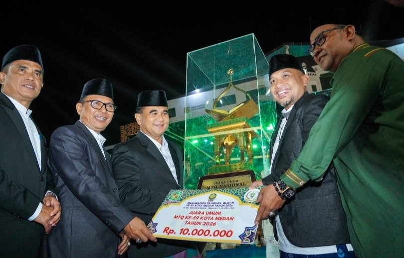 Piala bergilir MTQ Kota Medan diserahkan Wali Kota Medan, Rico Tri Putra Bayu Waas diwakili Asisten Pemerintahan dan Kesejahteraan Rakyat Setda Kota Medan, M. Sofyan kepada Camat Medan Selayang, Muhammad Husnul Hafis sekaligus menjadi penanda berakhirnya perhelatan MTQ ke-59 tingkat Kota Medan yang telah berlangsung dari tanggal 11-18 April 2026 di Jalan Gatot Subroto, Sabtu Malam, 18-04-2026 malam.