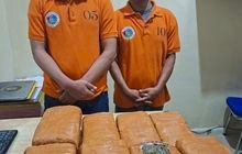 Dua tersangka yang diamankan masing-masing berinisial Andi (38) dan Nazri (45), bersama barang bukti berupa delapan bungkus ganja kering seberat total 13 Kg, satu buah tas, dan tiga unit handphone yang digunakan dalam transaksi.