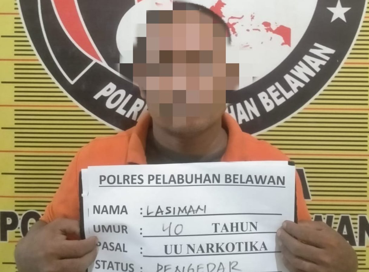 Tersangka yang ditangkap diketahui bernama Lasiman (40), dengan barang bukti berupa tiga plastik klip besar berisi narkotika jenis shabu, satu timbangan elektrik, satu bungkus plastik klip ukuran sedang, satu bungkus plastik klip kecil, satu unit handphone, satu buah kwitansi pembayaran, dan uang tunai sebesar Rp 200.000,-.