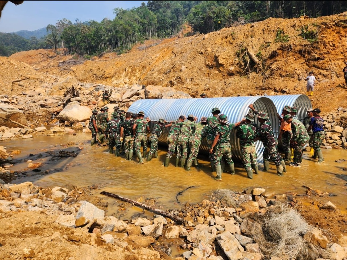 matabangsa.com-Tapanuli Tengah: Satgas Penanggulangan Bencana Alam (Gulbencal) Kodam I/Bukit Barisan merampungkan pembangunan Jembatan Armco di Desa Bair, Kecamatan Tapian Nauli, Kabupaten Tapanuli Tengah, Selasa (3/2/2026).