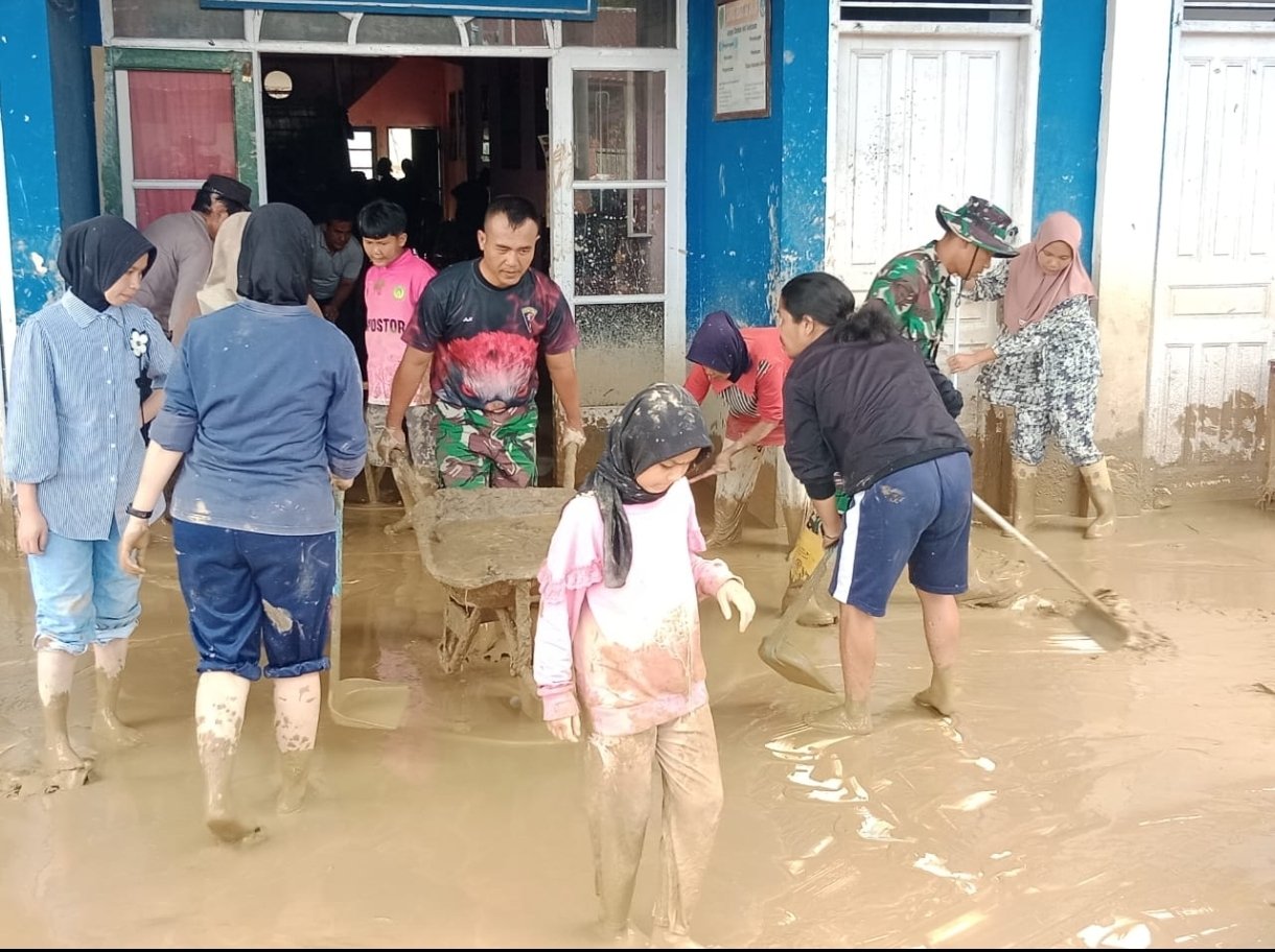 Di lokasi, personel gabungan membersihkan material lumpur yang masuk ke ruang-ruang kelas. Dinding sekolah yang terdampak genangan air turut dibersihkan, termasuk pekarangan dan lingkungan sekitar agar kembali tertata rapi dan aman digunakan oleh para siswa.