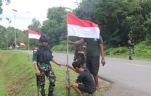 matabangsa.com – Boven Digoel: Dalam semangat memperingati Hari Ulang Tahun (HUT) Kemerdekaan Republik Indonesia yang ke-78 pada tahun 2023, sebagai bentuk kecintaan masyarakat terhadap Negara Kesatuan Republik Indonesia (NKRI) di perbatasan, Satuan Tugas Pengamanan Perbatasan (Satgas Pamtas) Statis RI-PNG Yonif Raider Khusus 111/Karma Bhakti mengibarkan bendera Merah Putih di sepanjang jalan Kabupaten Boven Digoel, Papua Selatan, pada Senin (07/08/2023).