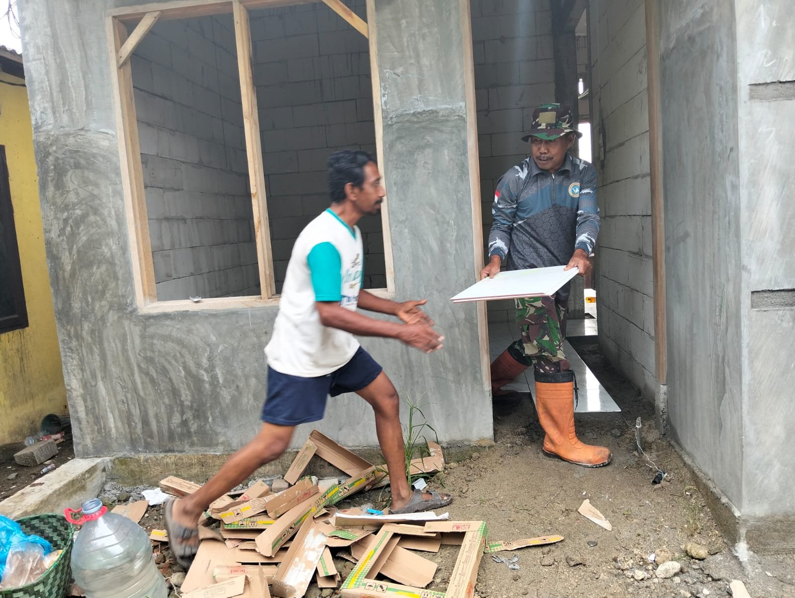 Kebersamaan antara TNI dan masyarakat terlihat harmonis di lapangan. Tanpa mengenal lelah, mereka bekerja di tengah cuaca yang tidak menentu demi menyelesaikan rumah bagi keluarga kurang mampu.
