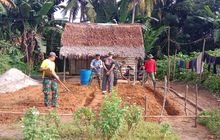 Pekerjaan membuat pondasi rumah pada bekas tapak RTLH milik Bebas Tarigan ini dilakukan sepenuhnya oleh personil Satgas TMMD dari satuan Yonzipur 1/Dhira Dharma.