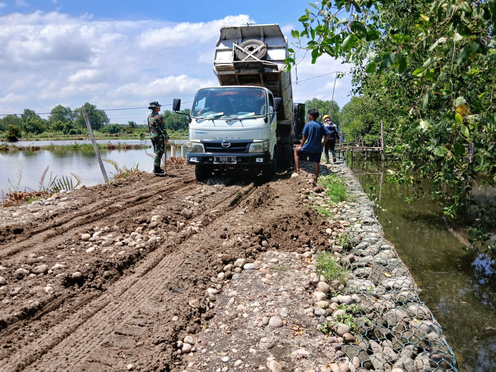 Satgas TMMD Kodim Medan Bekerja di Bawah Terik Matahari Bangun Jalan Tanggul