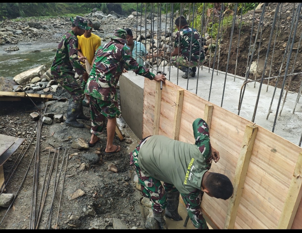 matabangsa.com-Nias Selatan: Yonzipur I/DD melaksanakan pembangunan Jembatan Bailey di Desa Sifalago Gomo, Kecamatan Boronadu, Kabupaten Nias Selatan, Minggu (1/2/2026). Jembatan Bailey dengan bentangan sepanjang 33 meter ini dibangun untuk menghubungkan Desa Sifalago Gomo dengan Desa Balohili Gomo yang selama ini terisolasi akibat keterbatasan akses penghubung.