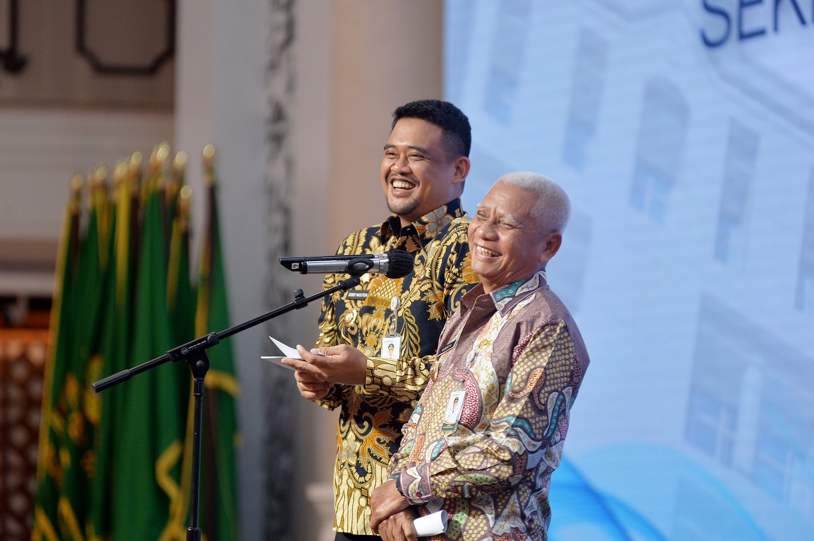MEDAN – Memasuki masa purna tugas sebagai Sekretaris Daerah Provinsi (Sekdaprov) Sumatera Utara (Sumut) Gubernur Sumut Muhammad Bobby Afif Nasution bersama Wakil Gubernur (Wagub) Sumut Surya menyampaikan terima kasih kepada Togap Simangunsong atas dedikasi dan kontribusinya selama bertugas di Pemerintah Provinsi (Pemprov) Sumut.