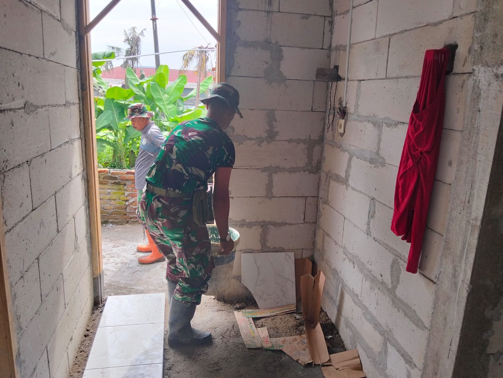 Setiap hari Babinsa berada di lokasi memastikan pekerjaan berjalan sesuai target. Ia tidak segan membantu memikul material, mengaduk semen, hingga membersihkan sisa pekerjaan.