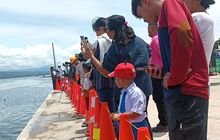 Siswa SD yang hadir di venue terlihat menggunakan baju olahraga. Mereka terlihat riang gembira. Warga sekitar Alfons (36) berharap anak SD yang hadir di venue miliki niat menjadi atlet Ski Air.