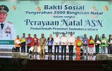 Kegiatan Bakti Sosial yang merupakan rangkaian perayaan Natal Pemprov Sumut ini dihadiri lebih dari 1. orang. Sebagian besar dihadiri masyarakat yang kurang mampu, cleaning service dan pembersih jalan.