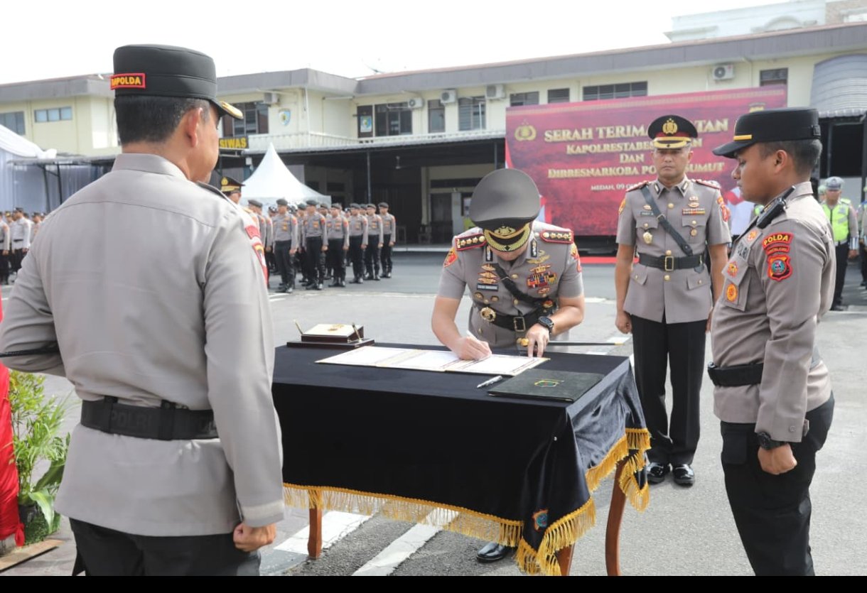 Sementara itu, jabatan Kapolrestabes Medan kini resmi diemban oleh Kombes Pol. Dr. Jean Calvijn Simanjuntak, S.I.K., M.H., yang sebelumnya menjabat sebagai Dirresnarkoba Polda Sumut. Sedangkan posisi Dirresnarkoba Polda Sumut kini diisi oleh Kombes Pol. Andy Arisandi, S.H., S.I.K., M.H., yang sebelumnya bertugas di Mabes Polri sebagai Penata Kebijakan Kapolri Madya Tk. III Sahli Kapolri.