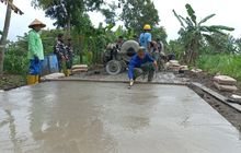 Adonan cor molen yang dilangsir dengan gerobak dorong atau angkong langsung di gelar pada titik jalan yang sudah ditentukan. Untuk menggelar adonan cor beton satgas TMMD Reg ke123 menggunakan roskam kayu sebagai alat bantu untuk meratakan permukaan cor beton sehingga permukaan cor akan halus.