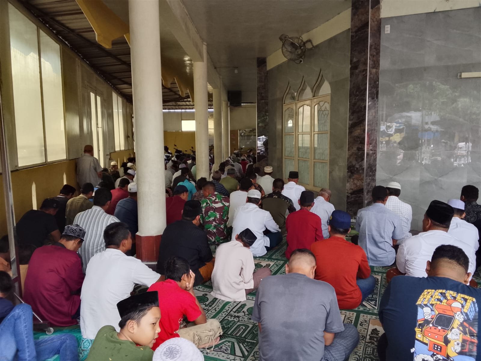 Para jamaah terlihat khusyuk dalam ibadah, mencerminkan semangat kebersamaan yang tumbuh di antara TNI dan warga.