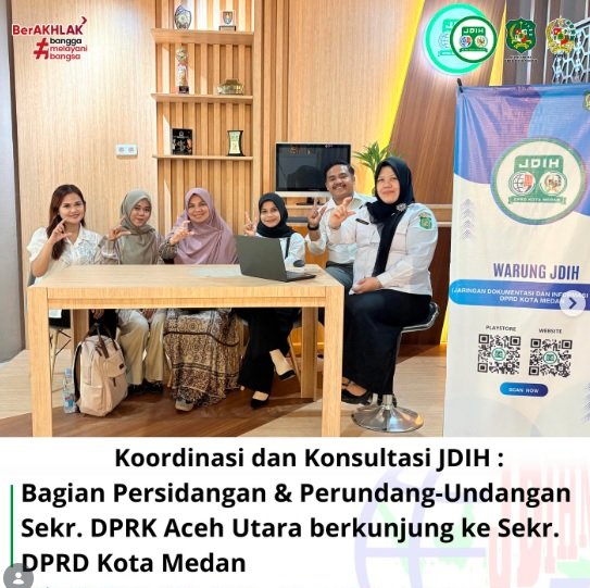 Kali ini, Tim JDIH DPRD Kota Medan menerima kunjungan dari Bagian Persidangan dan Perundang-undangan Sekretariat DPRK Aceh Utara dalam rangka koordinasi dan penggalian informasi untuk pengembangan JDIH di daerah mereka, Rabu (11/02/2026) .