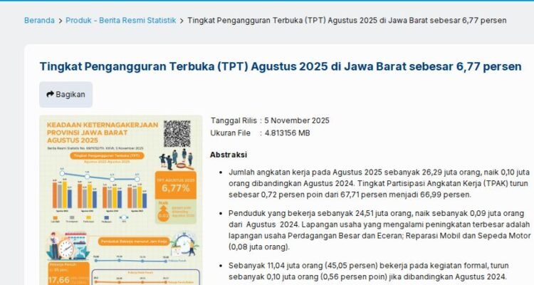 BPS Jawa Barat Angkatan Kerja Jawa Barat Bertambah 100 Ribu Orang, Partisipasi Justru TurunEkonomi, Jawa Barat, Nasional|Desember 14, 2025Desember 14, 2025oleh Dave Santomatabangsa.com – Bandung | BPS Jawa Barat mencatat jumlah angkatan kerja pada