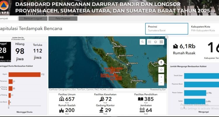 Data BNPB Terkini Terdata 228 Warga Meninggal, Sumatera Barat Catat Bencana Terdahsyat Sepanjang 2025Nasional, Sumbar|Desember 7, 2025Desember 7, 2025oleh Dave Santomatabangsa.com – Medan | Bencana banjir dan longsor di Sumatera Barat pada