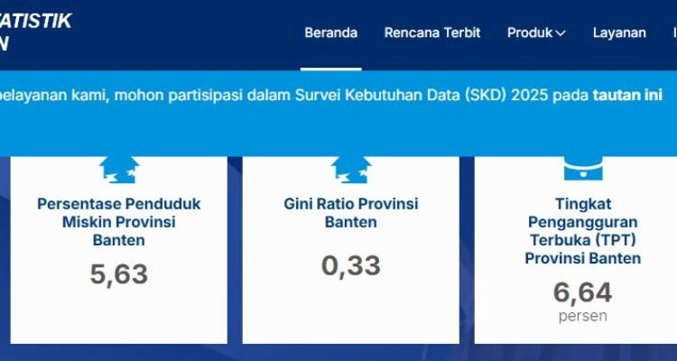 BPS Banten BPS Catat Penduduk Miskin Banten 772 Ribu Orang, Gini Ratio 0,33 Masih Jadi Pekerjaan Rumah BesarBanten, Ekonomi, Nasional|Desember 8, 2025Desember 8, 2025oleh Dave Santomatabangsa.com – Banten | BPS Banten merilis data terbaru mengenai kondisi sosial