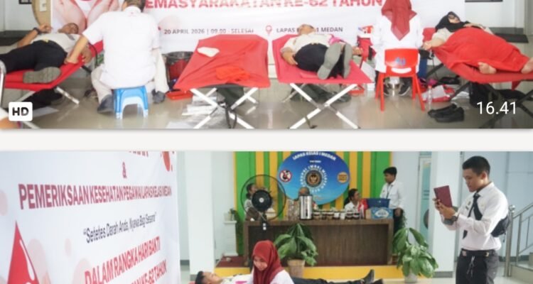 Donor Darah dan Pemeriksaan Kesehatan, Wujud Kepedulian Sosial Pegawai Lapas Kelas I MedanBlog|April 20, 2026oleh Ismanan Hasyimmatabangsa.com-Medan: Dalam rangka memperingati Hari Bhakti Pemasyarakatan ke-62 Tahun 2026, Lembaga Pemasyarakatan