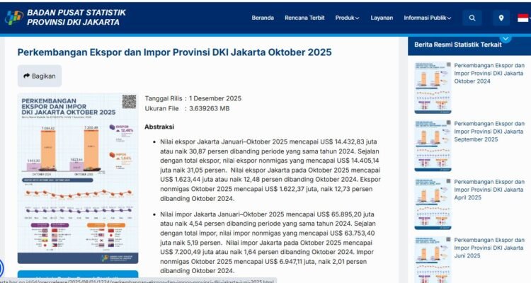 BPS DKI Jakarta Ekspor Perikanan Jakarta Turun 6,99 Persen, Di Tengah Lonjakan Total Ekspor 2025Ekonomi, Nasional|Desember 9, 2025Desember 9, 2025oleh Dave Santomatabangsa.com – Jakarta | Di tengah lonjakan ekspor Jakarta yang mencapai 30,87