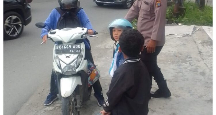 matabangsa.com – Medan | Sikap humanis kembali ditunjukkan personel Polsek Sunggal ketika sedang