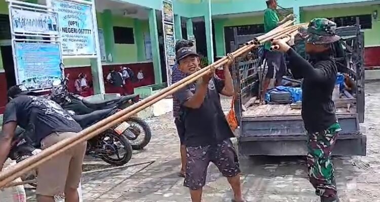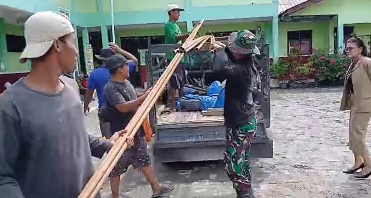 Semangat gotong royong terlihat jelas di SDN 067777 saat prajurit TMMD ke-126