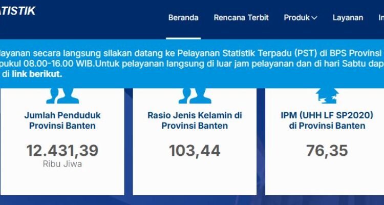 BPS Banten Penduduk Banten Capai 12,43 Juta Jiwa, Kepadatan Tembus 1.329 Jiwa per Km²Banten, Ekonomi, Nasional|Desember 8, 2025Desember 8, 2025oleh Dave Santomatabangsa.com – Banten | BPS Banten melaporkan bahwa jumlah penduduk provinsi tersebut
