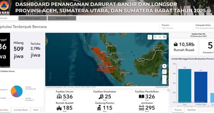 Data BNPB Terkini Banjir–Longsor 2025: 836 Meninggal, 10,5 Ribu Rumah Rusak, Pemerintah Kerahkan Bantuan ke 51 KabupatenAceh, Nasional, Sumut|Desember 5, 2025Desember 5, 2025oleh Dave Santomatabangsa.com – Medan | BNPB merilis gambaran lengkap dampak banjir dan longsor