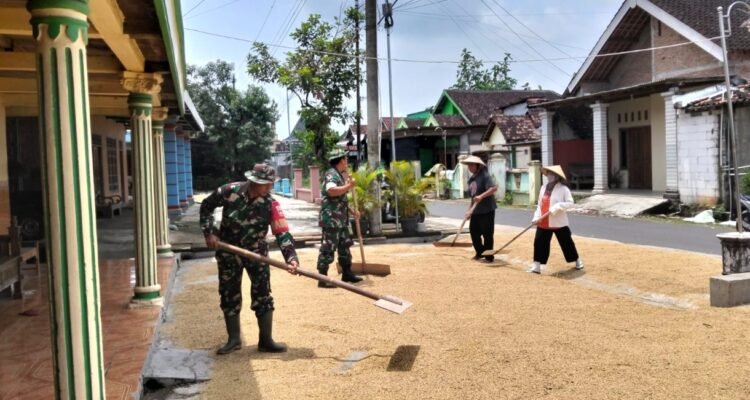 Babinsa Bantu Jemur Padi, Wujudkan Gabah Berkualitas