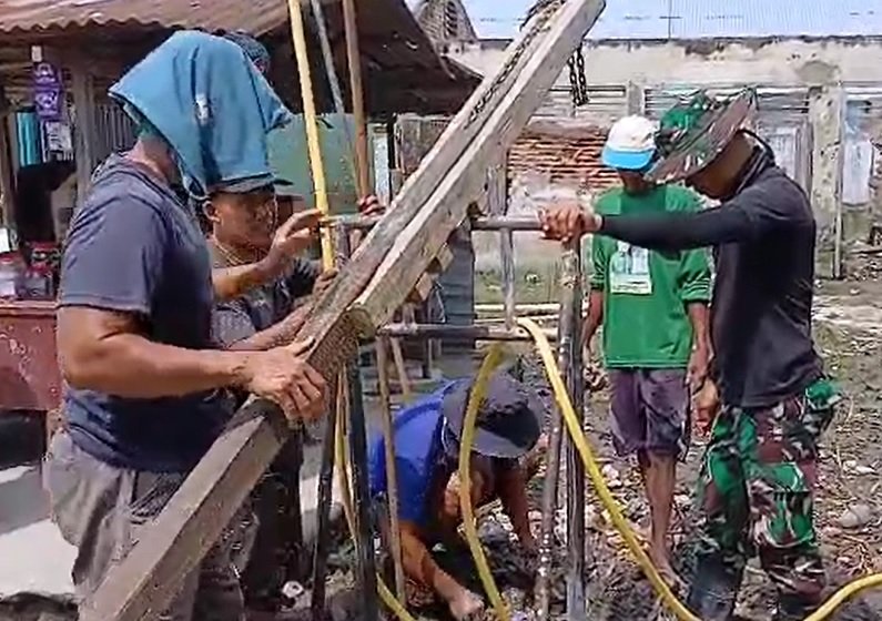 Langkah ini menjadi bagian penting dalam program TMMD yang berfokus pada peningkatan sarana air bersih di lingkungan pendidikan. Babinsa dan personel Satgas bahu-membahu menyiapkan lokasi, memastikan posisi pengeboran tepat sesuai perencanaan teknis.