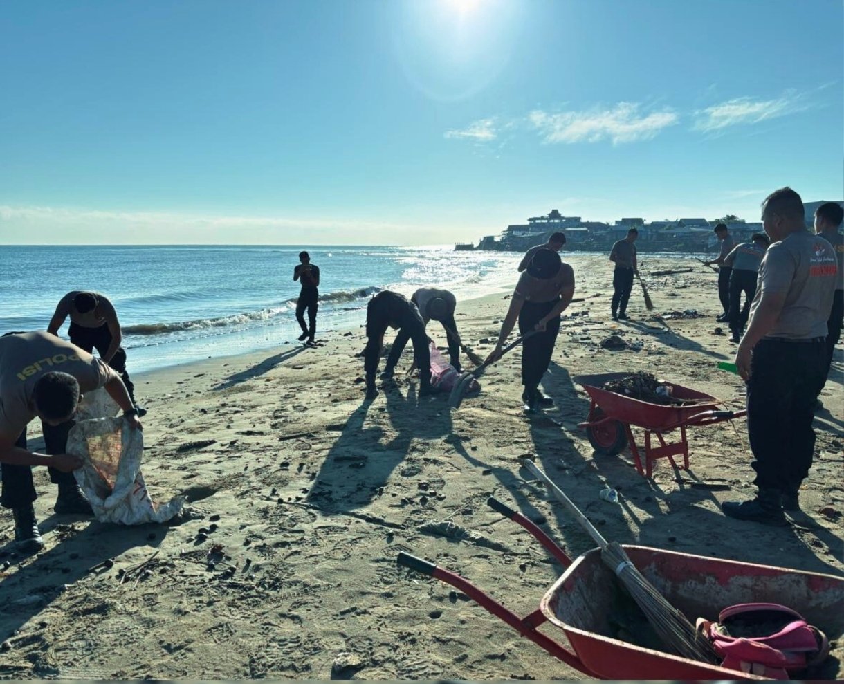 Kegiatan tersebut dipimpin langsung oleh Komandan Kompi 4 Batalyon C, AKP Sanro Situngkir, dengan melibatkan personel yang secara bergotong royong membersihkan sampah-sampah plastik dan material lain yang menumpuk di sepanjang kawasan pantai.