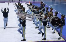 Momen penuh haru dan tangisan meliputi tim Drumband (LBB & LUG) Jawa Timur (Jatim) usai penampilan mereka di PON, yang berlangsung di GOR Futsal Disporasu, Medan, Selasa (10/9/2024).