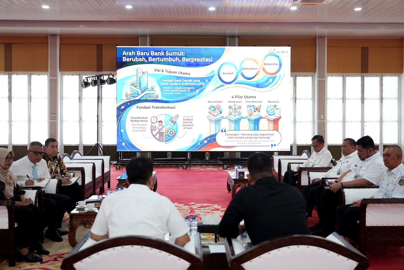 Pertemuan ini turut dihadiri Komisaris Utama Bank Sumut Firsal Ferial Mutyara, Komisaris Independen Erlina, dan Direktur Kepatuhan Eksir. Hadir pula Penjabat (Pj) Sekretaris Daerah Provinsi Sumut Sulaiman Harahap, Kepala Bappelitbang Dikky Anugerah, serta OPD terkait lainnya.