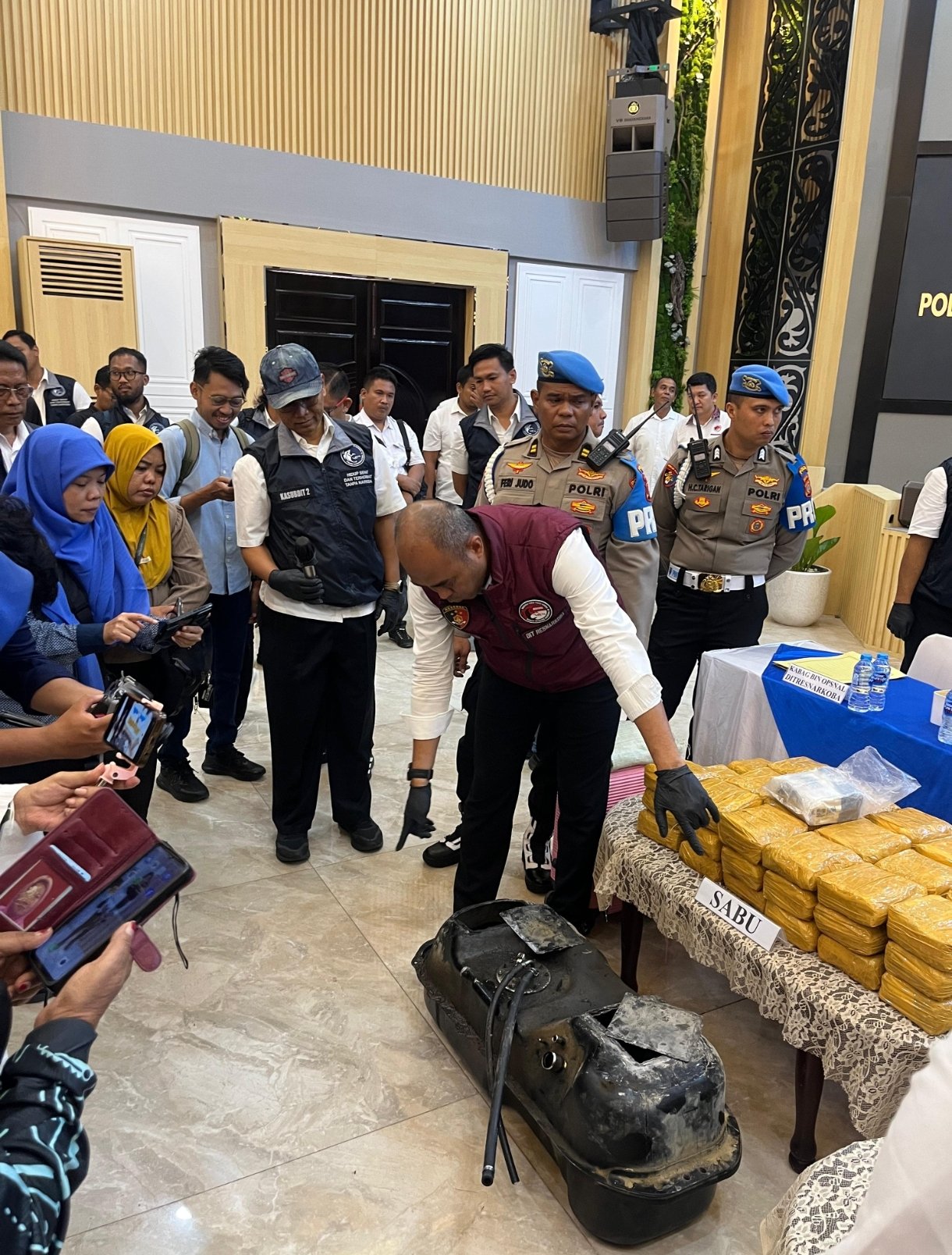 Dalam pengungkapan itu, polisi turut mengamankan barang bukti berupa 22 bungkus sabu yang disembunyikan secara rapi di dalam tangki bahan bakar minyak (BBM) sebuah mobil double cabin. Modus tersebut dilakukan dengan cara memodifikasi tangki kendaraan menjadi tiga kompartemen tersembunyi.