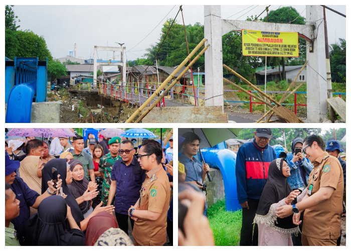 matabangsa.com – Medan | Menanggapi keluhan warga adanya jembatan rusak, Wali Kota Medan, Rico Tri Putra Bayu Waas langsung meninjau jembatan gantung di kota Bangun, Kec. Medan Deli yang rusak akibat diterjang banjir besar yang terjadi beberapa waktu yang lalu, Selasa (16/12/2025).