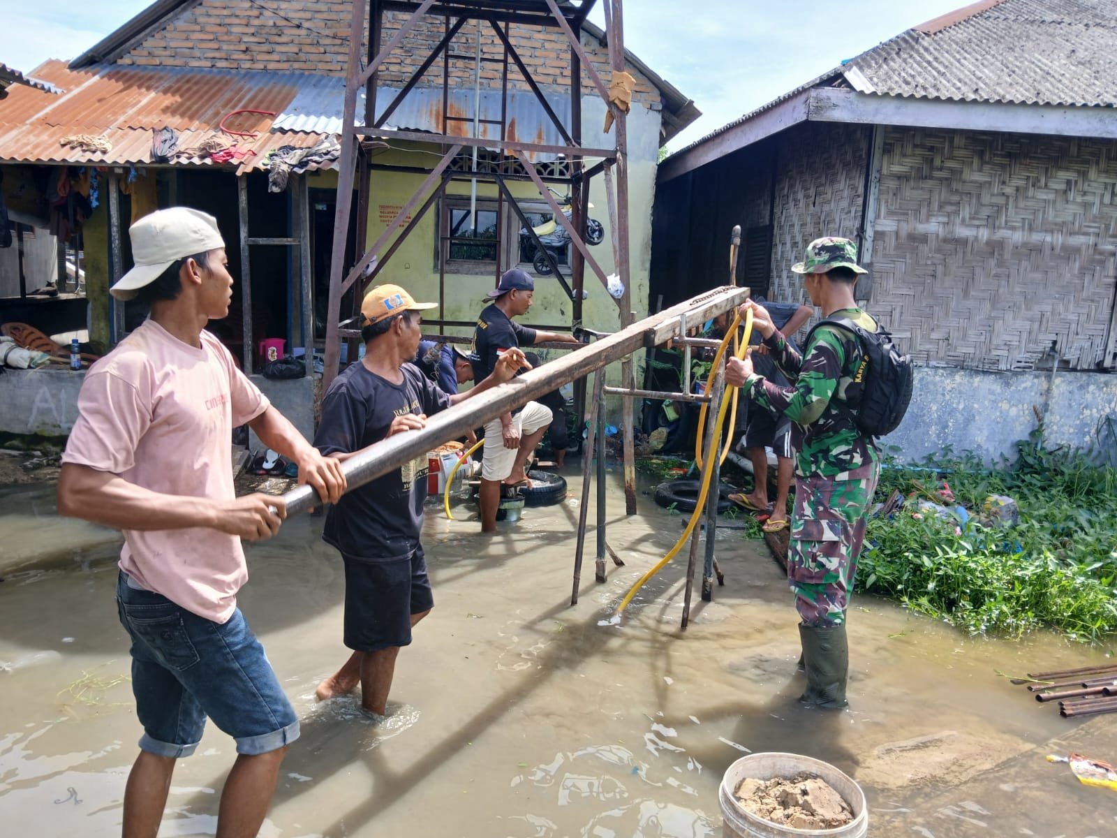Anggota TNI bersama warga setempat bekerja sejak pagi hari. Mereka mengangkat pipa, memasang selang, dan mengatur arah pengeboran dengan hati-hati. Meskipun lokasi tergenang air, semangat gotong royong tetap tinggi, kemarin.