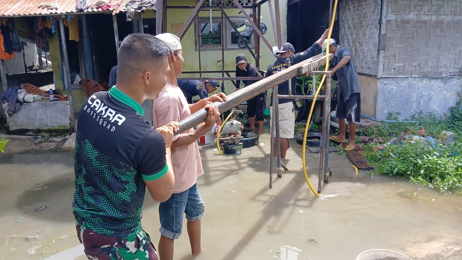 Sejak pagi, suara mesin bor terdengar memecah keheningan kampung. Warga bergotong royong bersama prajurit TNI, menyiapkan alat dan bahan yang dibutuhkan. Mereka saling membantu dengan semangat kebersamaan yang tinggi, tanpa mengenal lelah, kemarin.