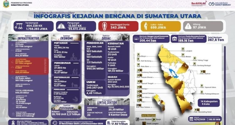 Bencana Sumatera Ratusan Sekolah dan Fasilitas Kesehatan Rusak, Layanan Publik di Sumut Terganggu BeratNasional, Sumut|Desember 12, 2025oleh Dave SantoMatabangsa.com – Medan: Sektor sosial di Sumatera Utara mengalami dampak besar akibat