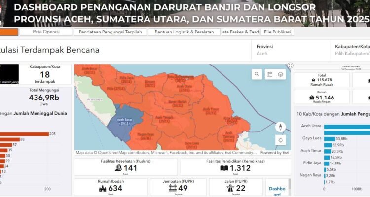 Data Bencana Aceh Dari BNPB Fasilitas Umum Rusak Parah, Banjir dan Longsor Lumpuhkan Layanan Publik di 18 Kabupaten AcehAceh, Nasional|Desember 26, 2025oleh Dave Santomatabangsa.com – Medan : Bencana banjir dan longsor yang melanda Provinsi Aceh