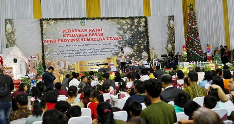MEDAN – Gubernur Sumatera Utara (Sumut) Muhammad Bobby Afif Nasution menghadiri Perayaan Natal Keluarga Besar Dewan Perwakilan Rakyat Daerah (DPRD) Sumut yang digelar di Gedung Serbaguna Pekan Raya Sumatera Utara (PRSU), Jalan Gatot Subroto, Medan, Selasa (23/12/2025). Perayaan Natal berlangsung khidmat dan penuh kebersamaan dengan mengusung tema “Allah Hadir untuk Menyelamatkan Keluarga”. Dalam sambutannya, Gubernur Bobby Nasution mengucapkan selamat atas terselenggaranya Perayaan Natal Keluarga Besar DPRD Sumut. Ia menilai kegiatan tersebut menjadi momentum penting untuk mempererat persatuan, persaudaraan, dan toleransi di tengah keberagaman masyarakat Sumatera Utara. “Perayaan Natal ini bukan hanya sebagai ibadah, tetapi juga sarana memperkuat kebersamaan, persaudaraan, dan toleransi. Nilai-nilai ini sangat penting untuk mendukung pembangunan Sumatera Utara,” ujar Bobby. Pada kesempatan tersebut, Bobby Nasution juga membagikan kisah inspiratif tentang Thomas Alva Edison. Ia menekankan pentingnya kasih sayang, kepercayaan, dan sudut pandang positif dalam membentuk masa depan seseorang. Menurutnya, satu orang yang memberi kepercayaan dan dukungan dapat mengubah kehidupan seseorang menjadi lebih baik. “Dengan semangat Natal, kita diajak untuk selalu melihat diri sendiri dan sesama secara positif. Ketika energi positif hadir, maka kebaikan akan tumbuh, tidak hanya bagi diri sendiri, tetapi juga bagi keluarga dan Sumatera Utara,” tuturnya. Bobby Nasution berharap perayaan Natal ini dapat menjadi penghiburan bagi masyarakat yang tengah menghadapi musibah, sekaligus membawa pembelajaran tentang cinta kepada Tuhan, sesama manusia, dan seluruh ciptaan-Nya. Selain itu, Bobby Nasution menyampaikan bahwa Pemerintah Provinsi (Pemprov) Sumut terbuka bagi organisasi maupun komunitas yang ingin menyalurkan bantuan dan berkolaborasi untuk membantu masyarakat yang membutuhkan. “Tadi saya mendengar dari Ketua Panitia bahwa Perayaan Natal Keluarga Besar DPRD Sumut juga mengundang masyarakat yang terdampak bencana untuk mendapatkan bantuan. Kami memiliki bantuan di posko yang merupakan sumbangan masyarakat Indonesia untuk masyarakat Sumut. Kami mengajak organisasi maupun komunitas untuk berkolaborasi menyalurkan bantuan tersebut,” ucapnya. Sementara itu, Ketua DPRD Sumut Erni Ariyanti Sitorus menyampaikan bahwa Natal bukan sekadar perayaan keagamaan, tetapi juga momentum untuk menumbuhkan harapan, kerendahan hati, dan semangat melayani. “Pesan universal Natal mengajak kita untuk terus menumbuhkan kebersamaan dan pengharapan dalam membangun Sumatera Utara,” katanya. Ketua Panitia Natal DPRD Sumut, Benny Harianto Sihotang, melaporkan bahwa perayaan Natal dilaksanakan secara sederhana mengingat kondisi bencana di sejumlah wilayah Sumut. Panitia menghadirkan anak-anak dari enam panti asuhan di Kota Medan serta masyarakat terdampak banjir dari Kecamatan Medan Helvetia dan Sunggal. “Perayaan Natal ini kami tidak melaksanakan kunjungan sosial, tetapi menghadirkan anak-anak dan pengurus dari enam panti asuhan untuk menerima bantuan,” ucapnya. Turut hadir dalam acara tersebut Wakil Gubernur Sumut Surya, Penjabat Sekretaris Daerah Provinsi Sumut Sulaiman Harahap, unsur Forkopimda Sumut, anggota DPRD Sumut, serta jajaran Organisasi Perangkat Daerah (OPD) Sumut.
