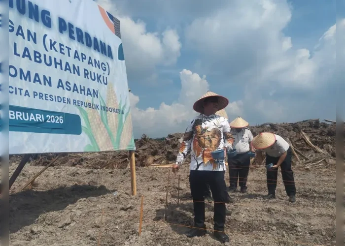 matabangsa.com – Asahan : Pemerintah Kabupaten Asahan menunjukkan komitmennya dalam mendukung penguatan ketahanan pangan daerah. Hal ini terlihat dari kehadiran Wakil Bupati Asahan, Rianto SH MAP, yang mewakili Bupati Asahan dalam kegiatan penanaman jagung perdana di lahan milik Lembaga Pemasyarakatan (Lapas) Kelas IIA Labuhan Ruku, Kecamatan Air Joman, Kabupaten Asahan, Jumat (13/02/2026).